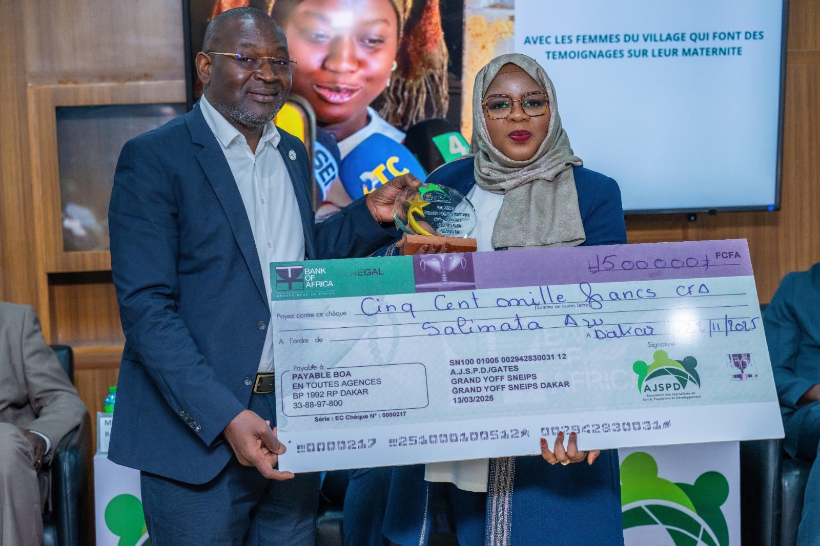 Pour la radio, Salimata AW de la RFM gagne le premier prix, Josette KALY de la radio SUD FM obtient le deuxième prix.