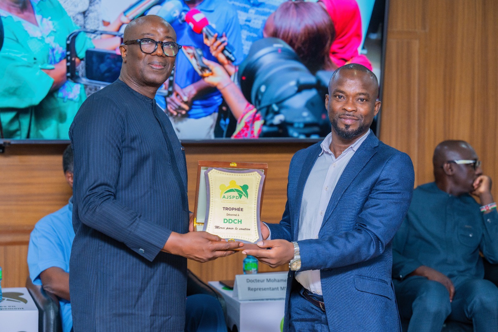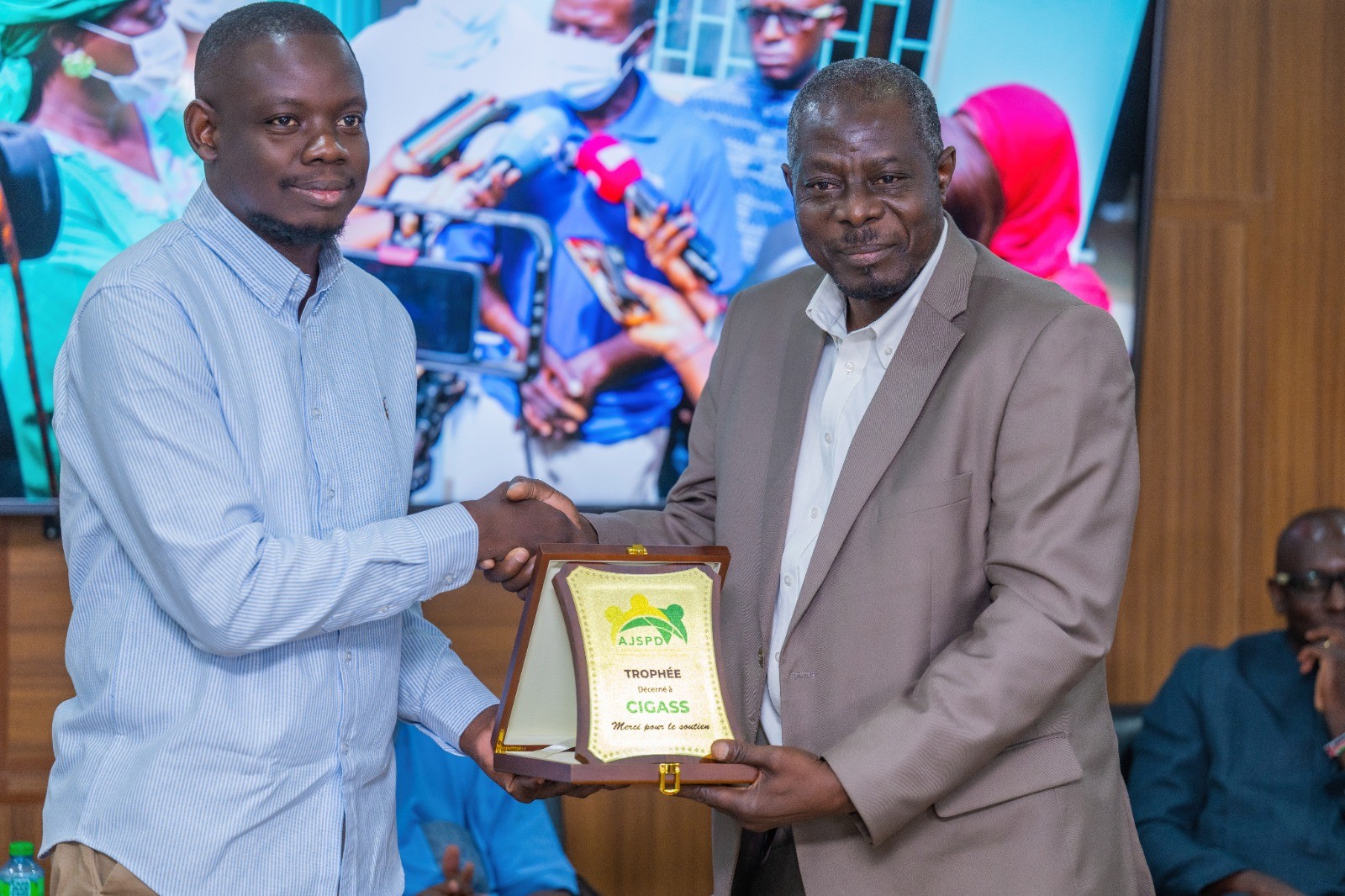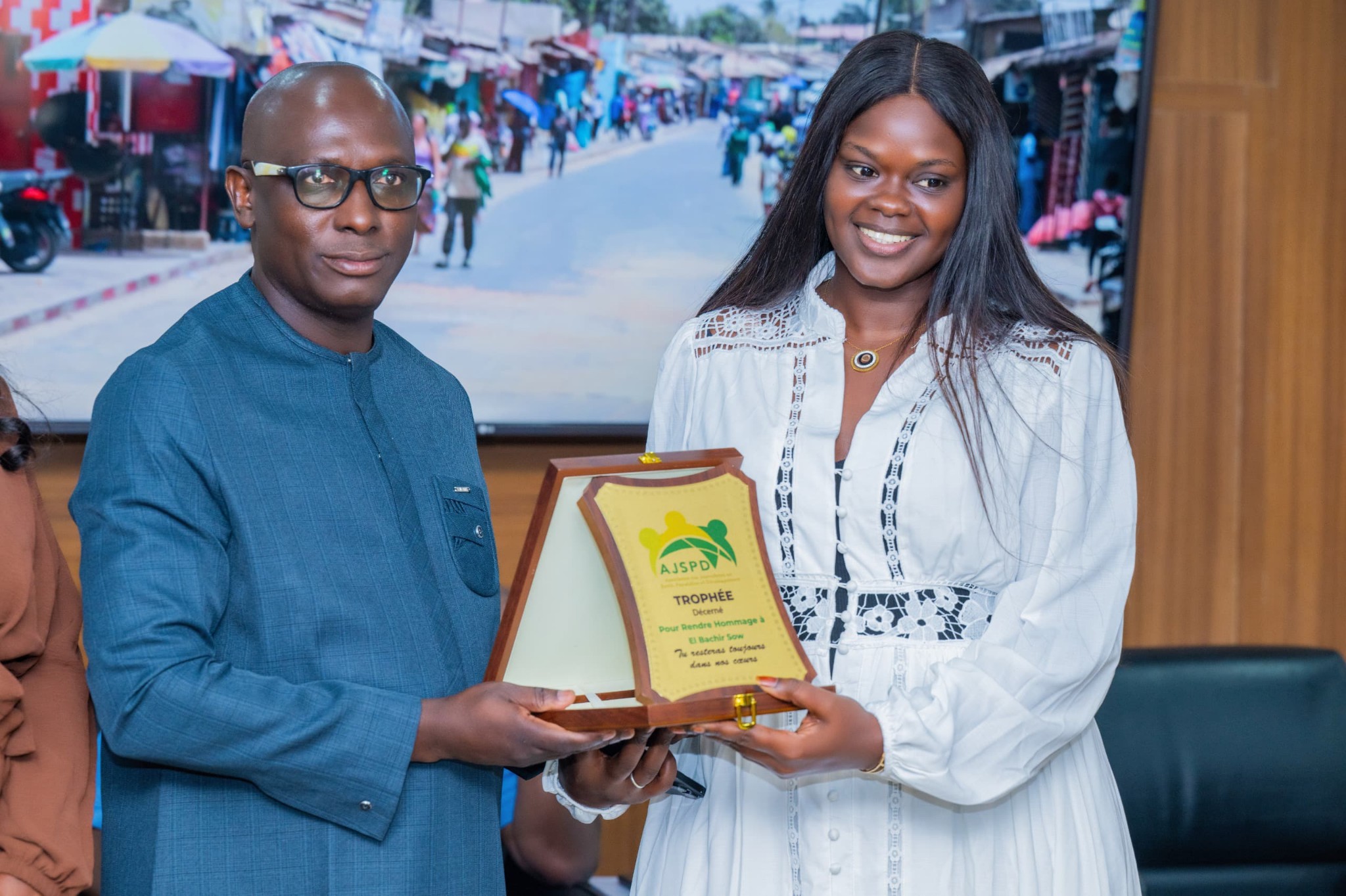 L’AJSPD a profité de cette cérémonie pour remettre des trophées de reconnaissance et de remerciement à ses partenaires et aux familles de feu Alassane CISSÉ de la RTS, ancien président de l’association et à celle de notre doyen feu El Bachir SOW du Journal le SOLEIL.